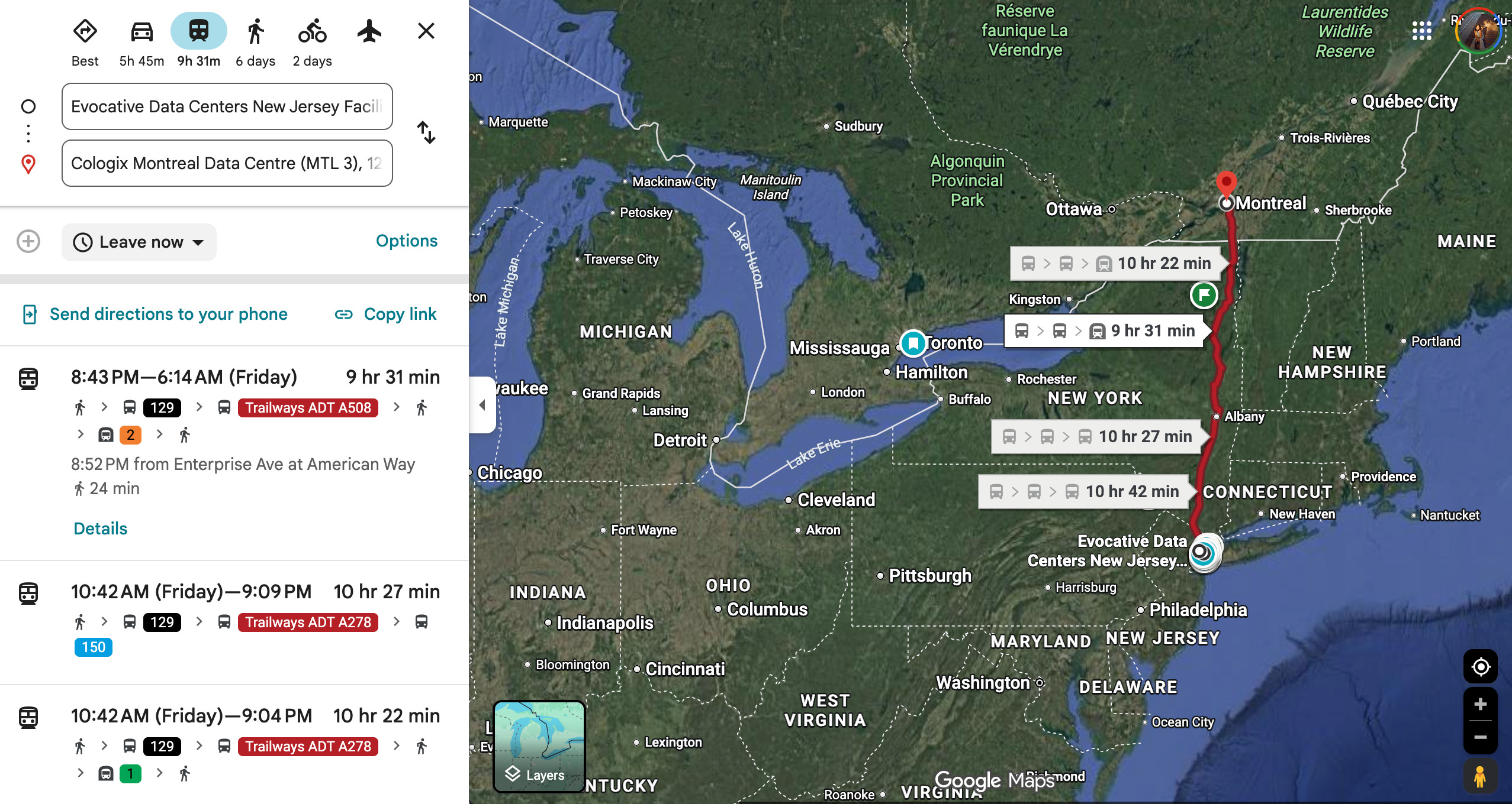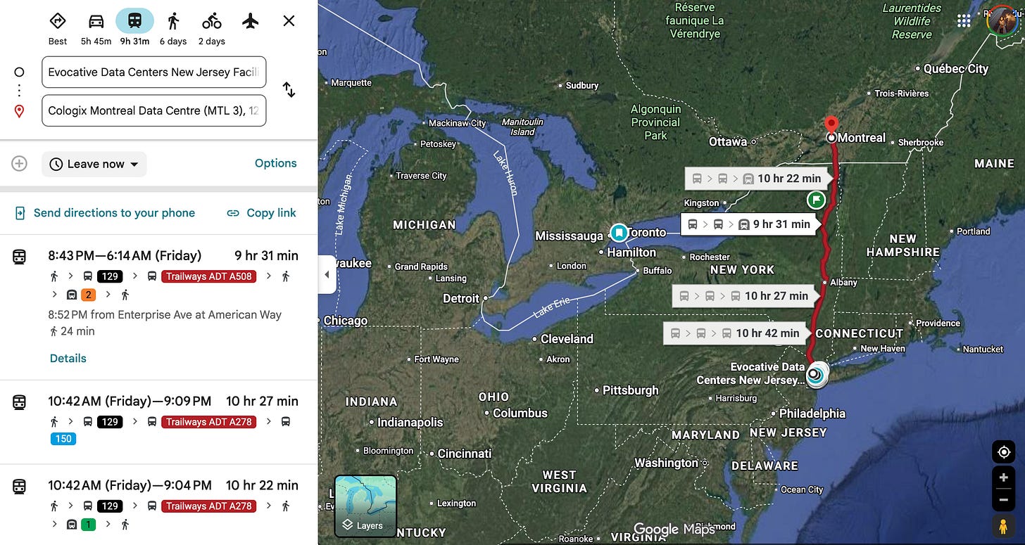 When I looked up the locations of the data centers closest to me, I realized most of my internet destinations were hosted in Canada. That seems like a walkable distance from New York… right?