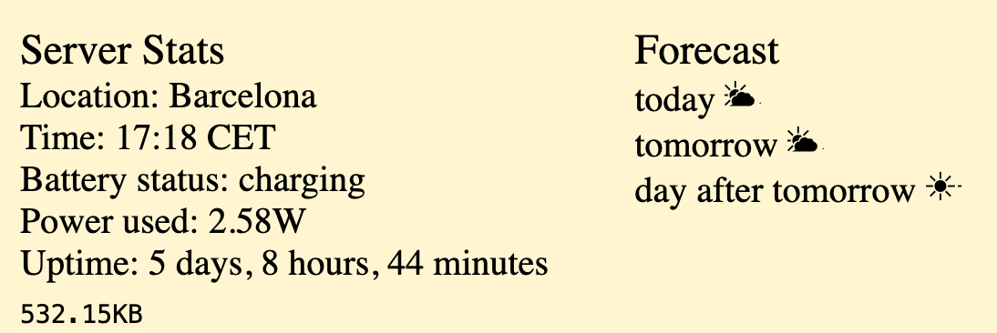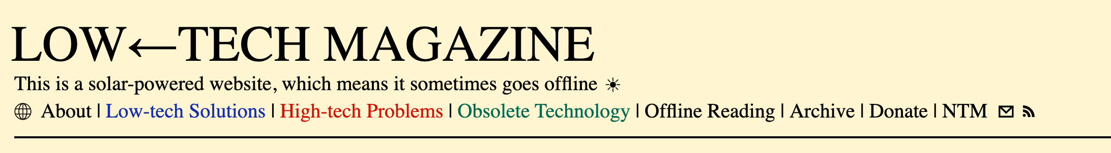 Low Tech Magazine publishes details about their solar-powered server to give us an idea of when their site may be inaccessible. The site also displays how much battery visitor traffic consumes and constantly experiments with their solar power equipment.