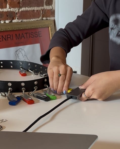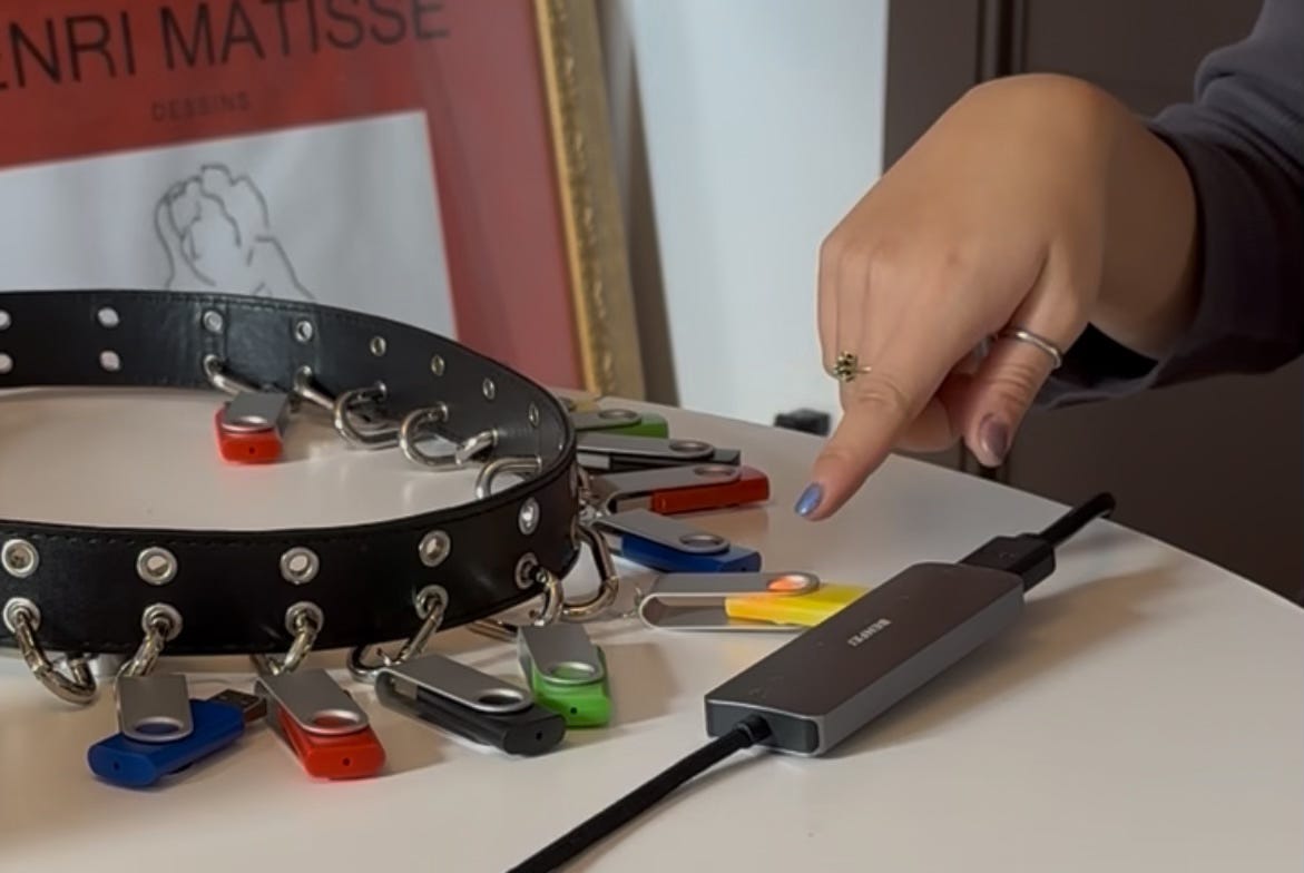 We’re seeing a resurgence of physical media. A rising trend of putting together “analog shoeboxes” of tangible memories (photo booth strips, ticket stubs, journals) is dominating the algorithm. And while the nostalgia-maxxing trend probably won’t last forever, this spirit of breathing new life into a forgotten form (USBs) feels significant.