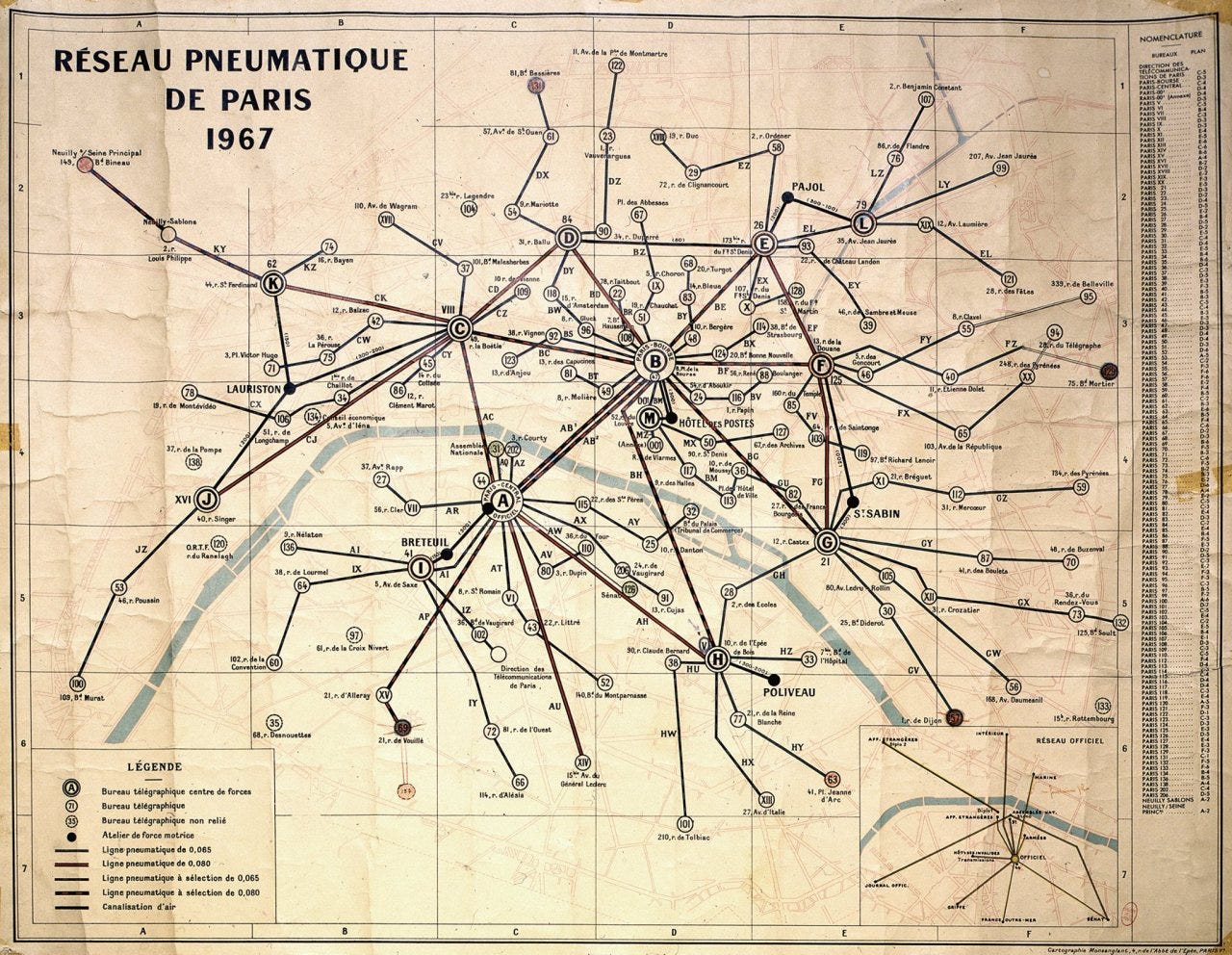 Graeber talks about bureaucracy as a form of poetic technology, where mechanical forms of organization (pneumatic tubes) can realize impossible visions.1 But like in Spiderman: with great power comes great responsibility.