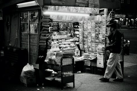 A copy of The New York Times is the same(ish) as a cup of coffee in New York ($4). The print subscription may be cheaper, but its wildly unreliable — I had to fight several AI bots to make sure I got my paper delivered. Even if you were up to trade your morning coffee with the paper, most newsstands don’t sell the paper anymore… just gum and beverages.